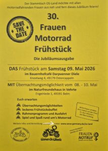 | 11. | Mai | 29. Frauen Motorrad Frühstück | Orga Team |